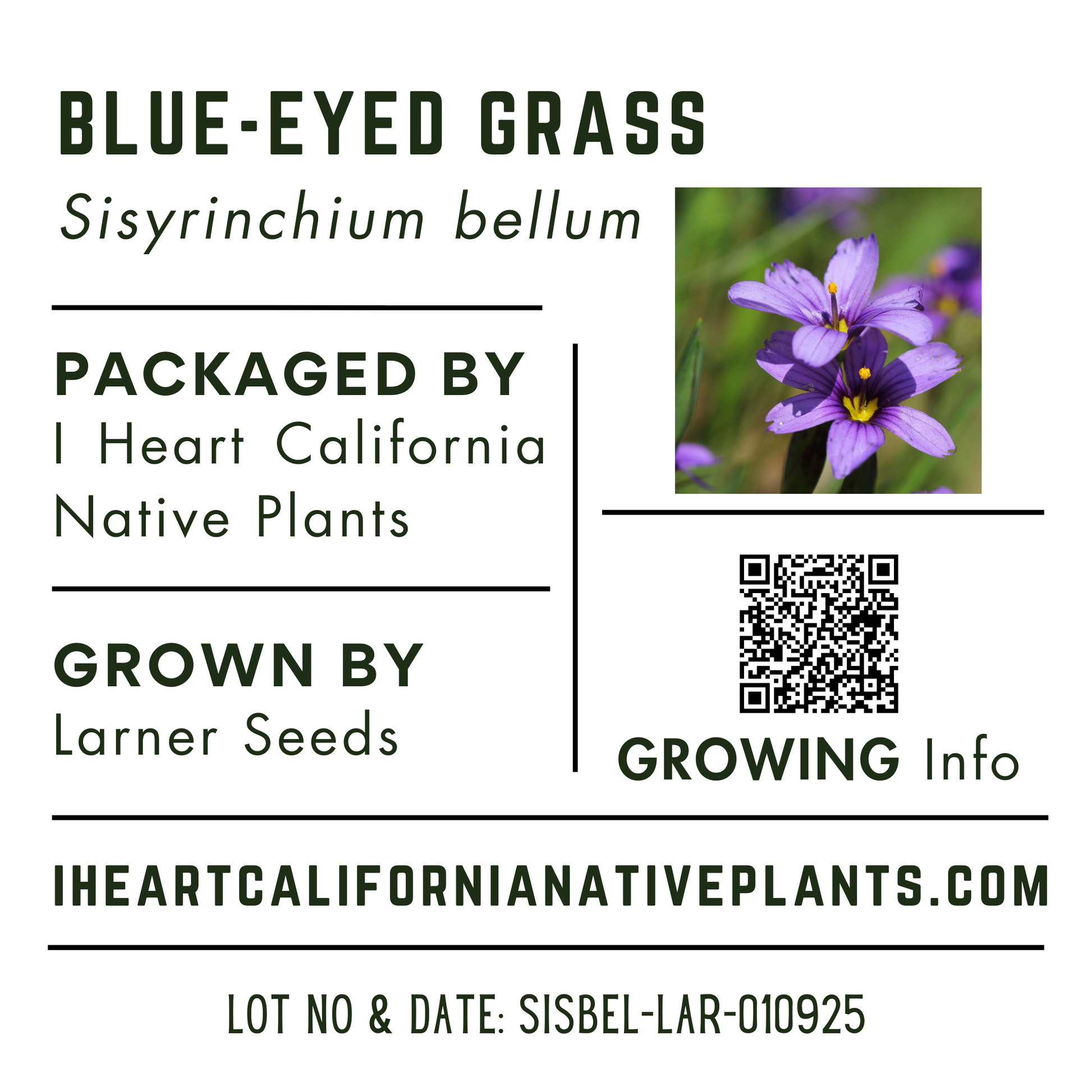 Blue-eyed Grass (Sisyrinchium bellum) is a 1-ft-tall perennial herb that grows throughout California, usually in open places where there is some moisture, particularly grassy areas. It can also be found in woodlands and at altitudes up to almost 8000 feet. Its leaves are grassy and tufted. The flowers are small and purplish-blue, varying somewhat in color from a true blue to a definite purple; occasional white-flowering plants are found. It flowers from January to July. After flowering, it dies back to the ground and is dormant over the summer. It prefers some moisture and good drainage, but will tolerate summer dryness. It can be propagated by seed, and self-sows. It can also be propagated by division of its rhizomes, and the flower stems can be rooted. It is moderately hardy and will tolerate temperatures down to 20 degrees F. Blue-eyed Grass is very easy to grow and will easily reseed. Best to plant on flat areas in loamy soils that that hold moisture well. Even though it goes dormant in the summer in dryer, southern areas, Blue-eyed Grass is more likely to survive the summer drought with occasional watering. It's best to plant this at the edges of landscapes for pops of color. This plant is on several fire-resistant plant lists, including FireSafe Marin and County of San Diego. From Calscape.