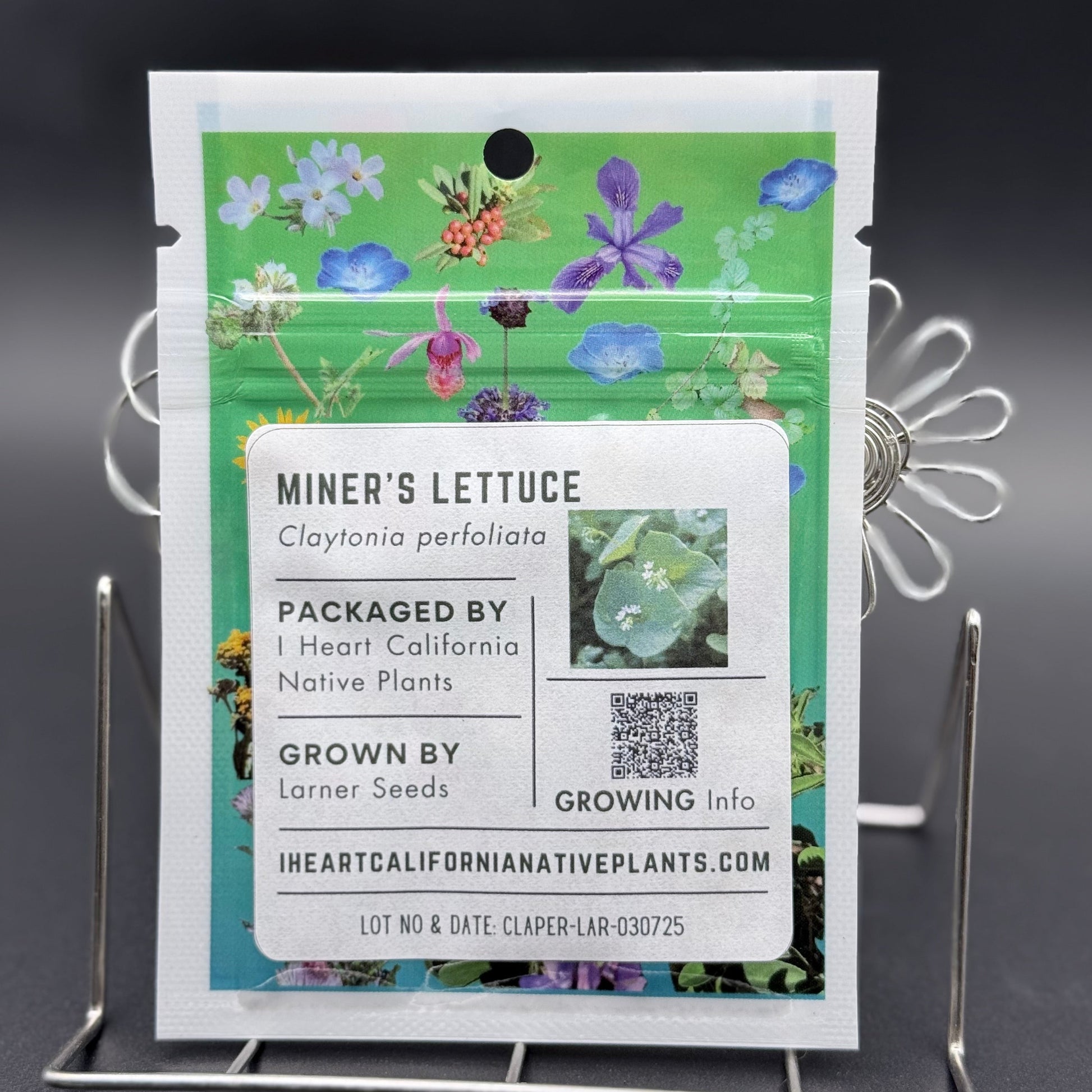 Miner's lettuce or Rooreh (Claytonia perfoliata) is an annual herb in the Montia family. It is native to a large portion of western North America, including almost every county in California. It is a trailing plant. Mature leaves are round, succulent and edible. The small white flowers have five petals they appear from February to May or June. The presence of Rooreh is indicative of a healthy oak woodland. This plant tends to be more drought adapted near the coast and other cool-weather areas. From Calscape.