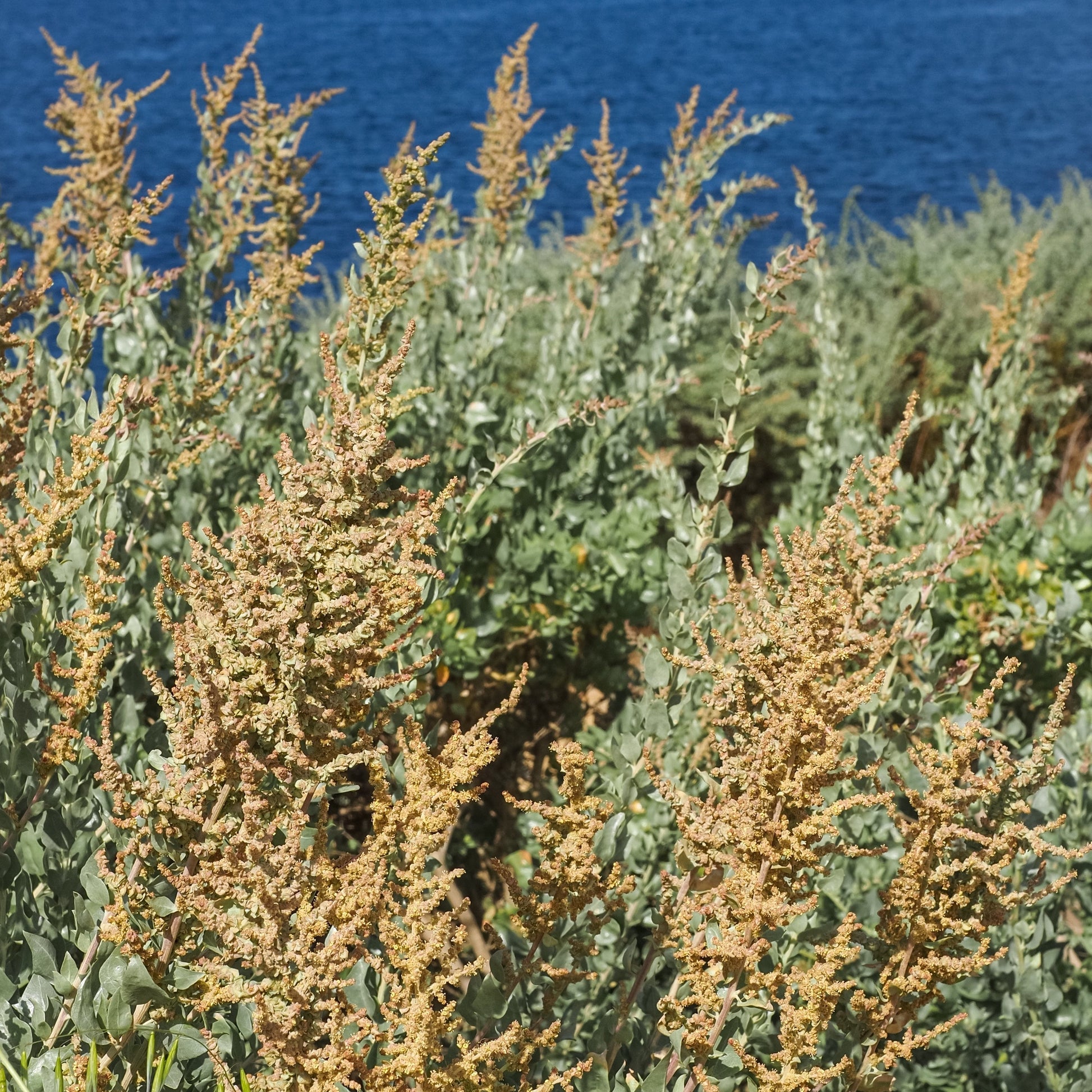 Big saltbush (Atriplex lentiformis) is a fast-growing, highly branched shrub with scaly gray-green leaves. In summer or fall, it produces creamy-white flowers arranged in tassel-like clusters. Typically reaching 3 to 9 feet in height and spreading even wider, it forms a dense, bushy structure. Maximum height is achieved in areas with abundant soil moisture. This hardy shrub thrives in full sun and well-drained soil. While it may appear too large for small residential gardens, it is highly effective for stabilizing slopes and works well as a natural hedge. Big saltbush is especially valuable for wildlife, particularly songbirds. According to the Wild Bird Center, it attracts more birds than any other plant in their garden. Quail are drawn to its seeds and rely on the dense shrub for protective cover. From Calscape.